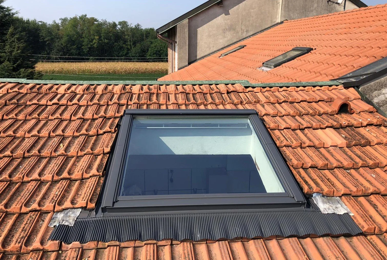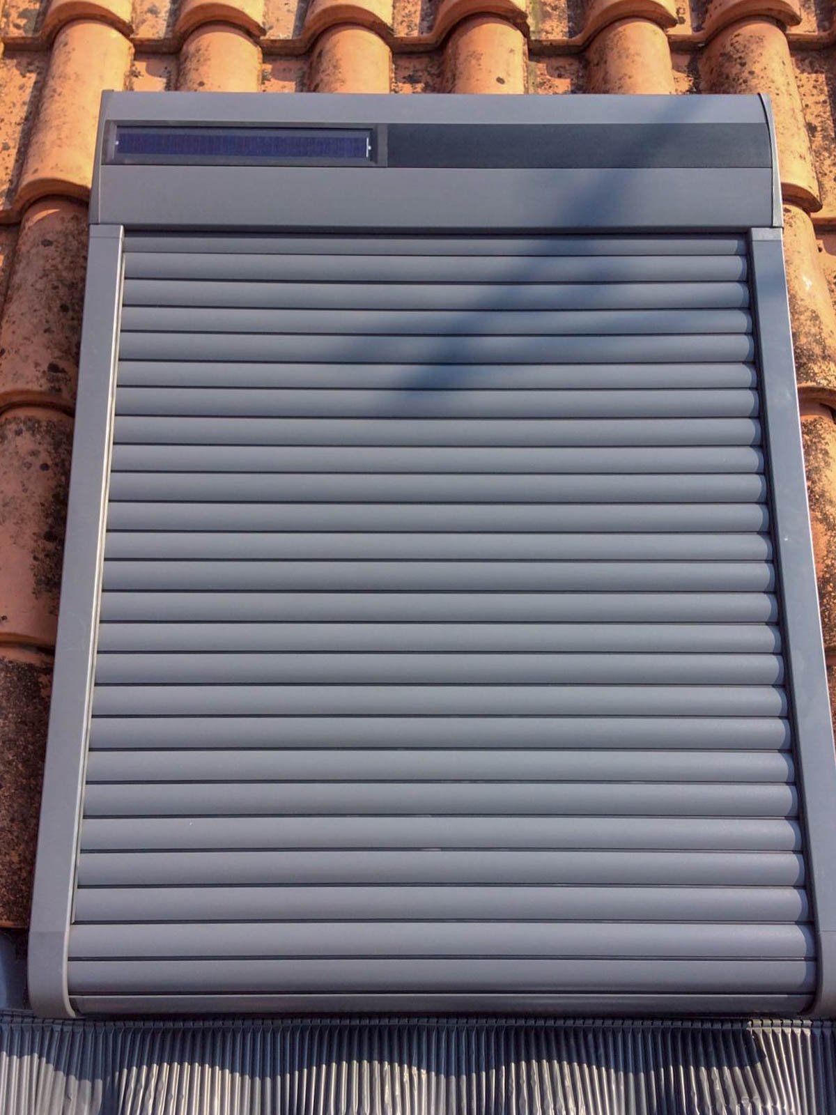 Nell’immagine a sinistra un bellissimo Velux con tapparella motorizzata ad energia solare che: